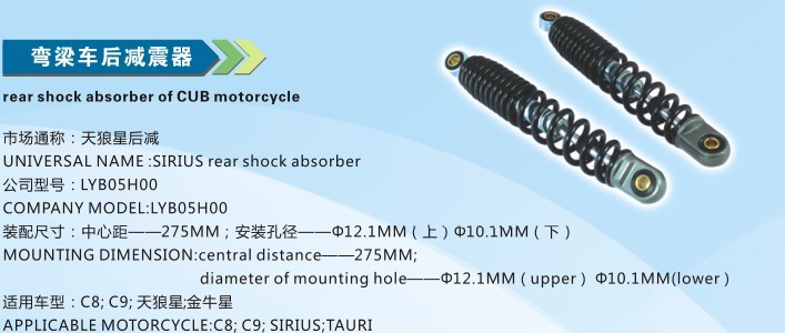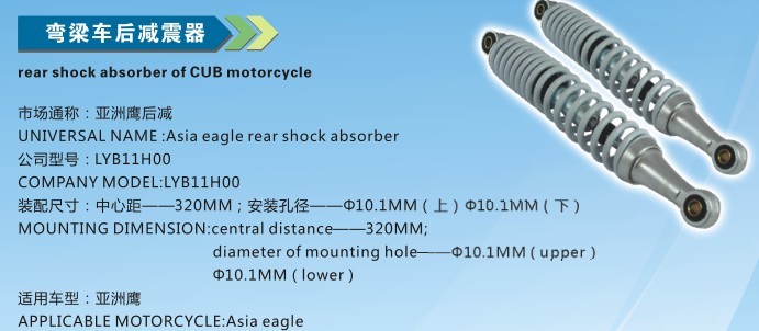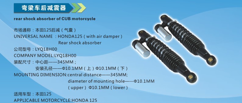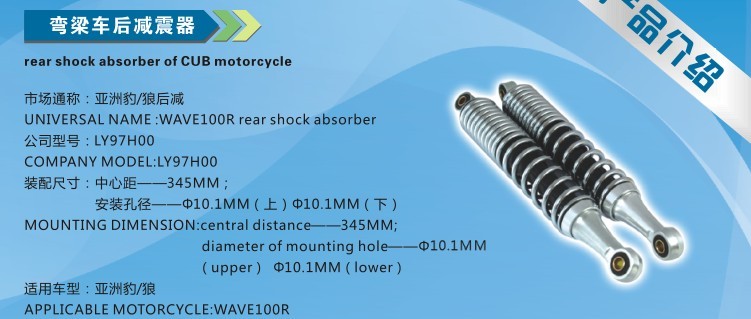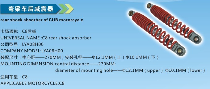 公司以两轮摩托车减震器和三轮摩托车减震器为主要产品,并且具备汽车减震器的研发能力。品种涵盖市场上所畅销的排量为50CC---250CC各类摩托车的前后减震器,共计500余种,并能按客户要求开发各类型减震器。